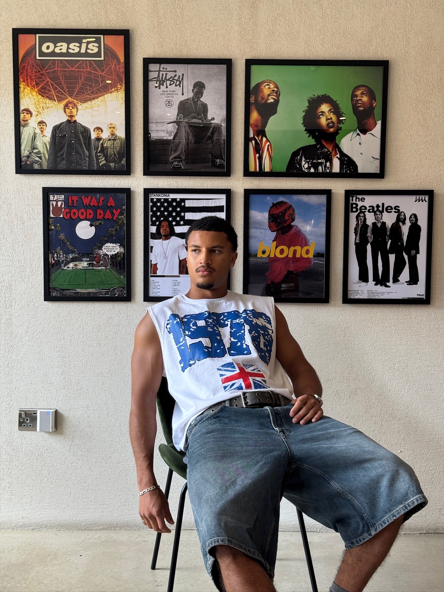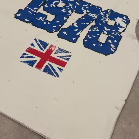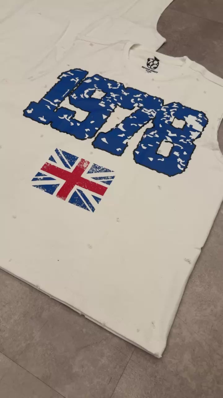 great britain sleeveless t shirt. boxy fit. distressed detailing.
