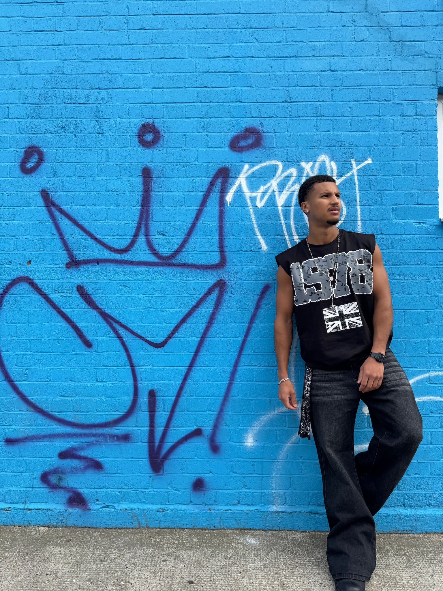 great britain sleeveless t shirt. boxy fit. distressed detailing.